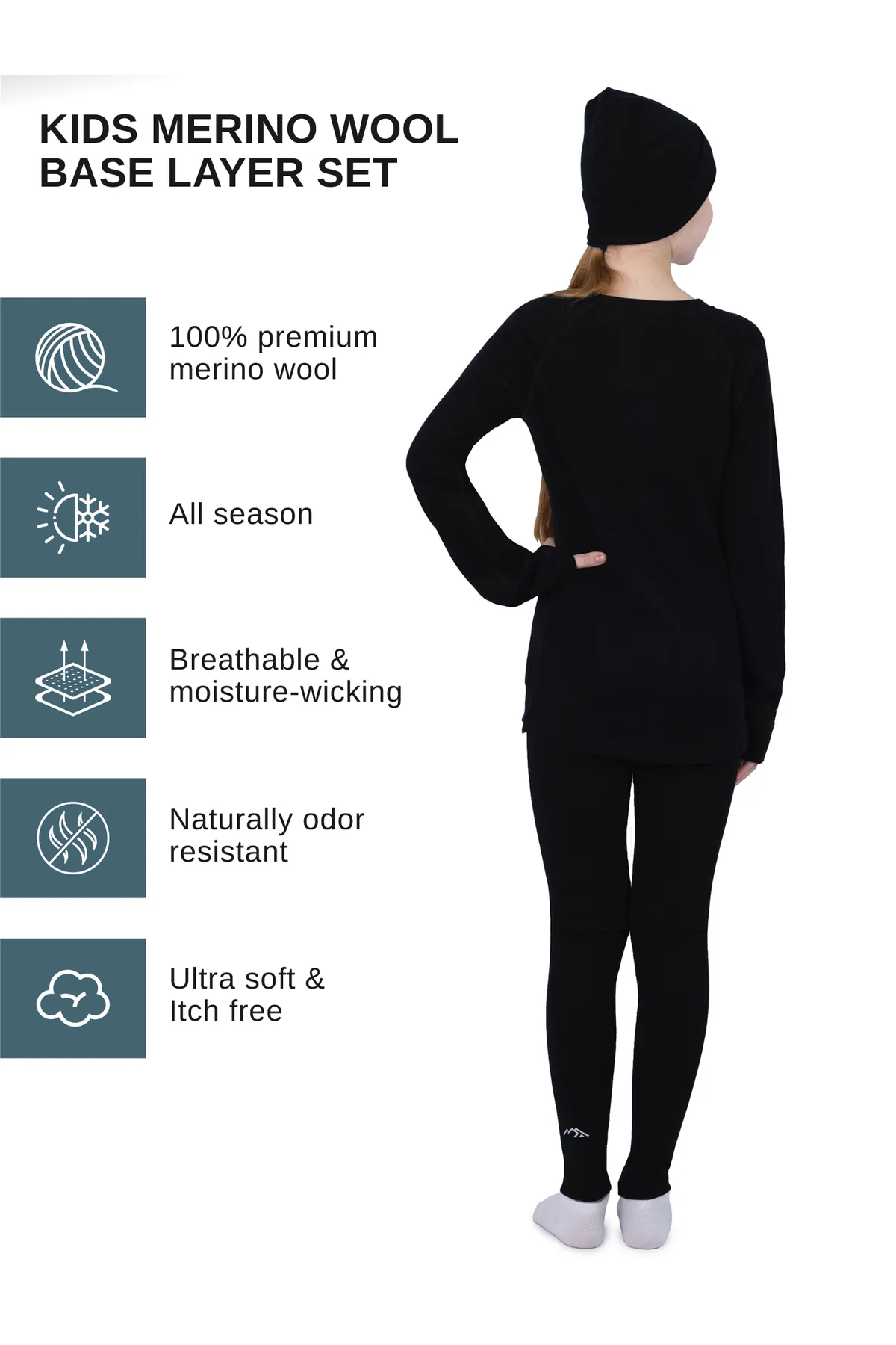 Wrap your little explorer in pure comfort with our Kids’ Merino Set in classic Black. Made from 100% premium Merino wool, this set naturally regulates temperature — keeping your child warm in winter and cool in spring. The fabric’s exceptional breathability wicks away moisture fast, preventing overheating and discomfort during active play. Naturally odor-resistant, soft, and non-itchy, it feels gentle even on sensitive skin.