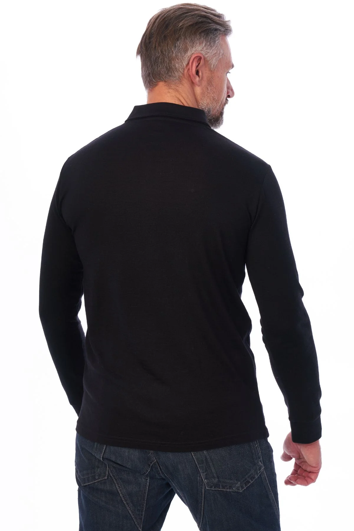 Men's Merino Wool Long Sleeve Polo Black Ink
